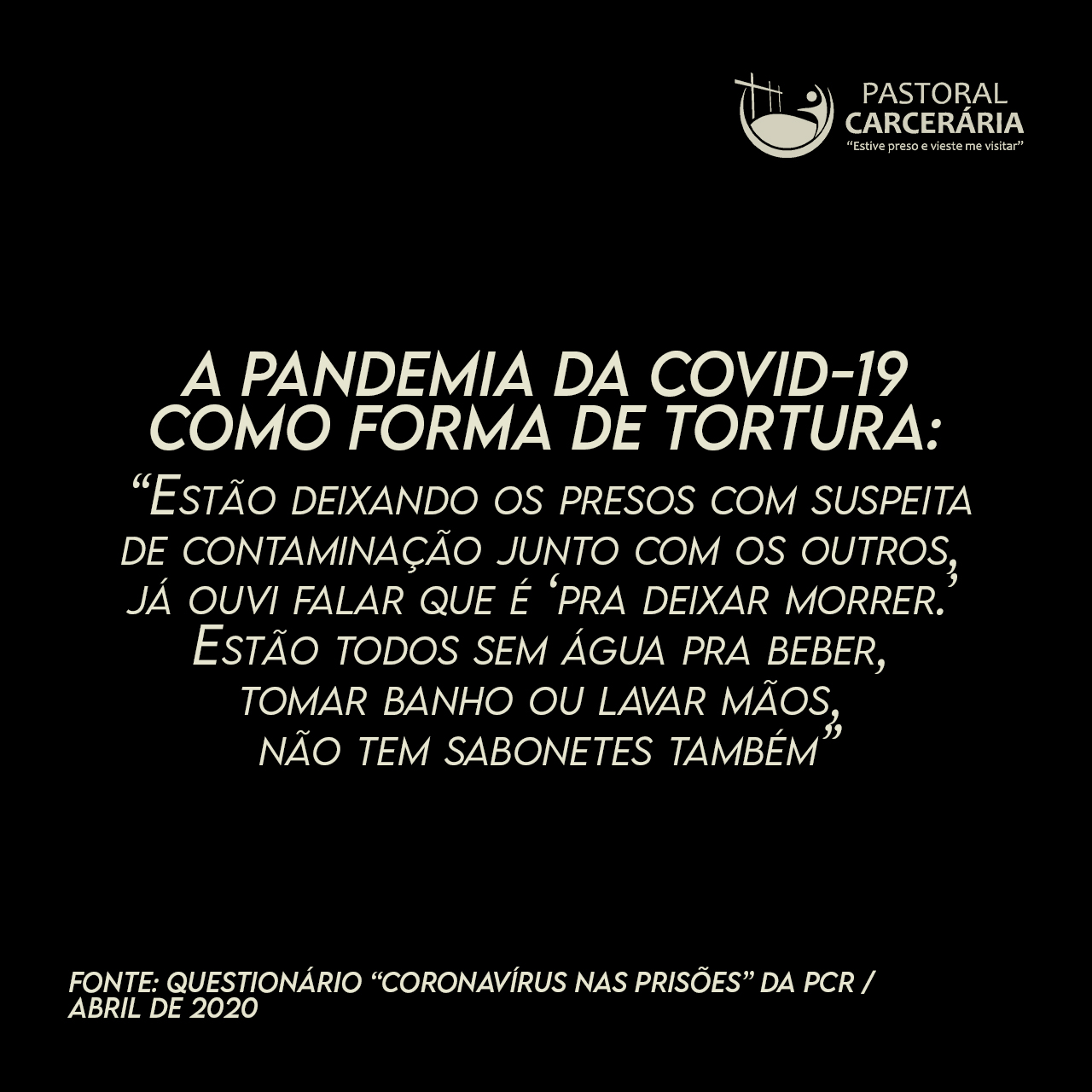 Isso é o que a Pastoral e outras entidades parceiras definem como tortura estrutural. Estar na prisão, privado de liberdade, em uma cela superlotada, sem condições de higiene, com alimentação precária, racionamento de água e com doenças se alastrando é uma tortura tão grave quanto a violência. Os familiares das presas e presos também sofrem e são torturados com a pessoa presa, pois são eles que arcam com todos os custos de manter a pessoa que está na prisão.