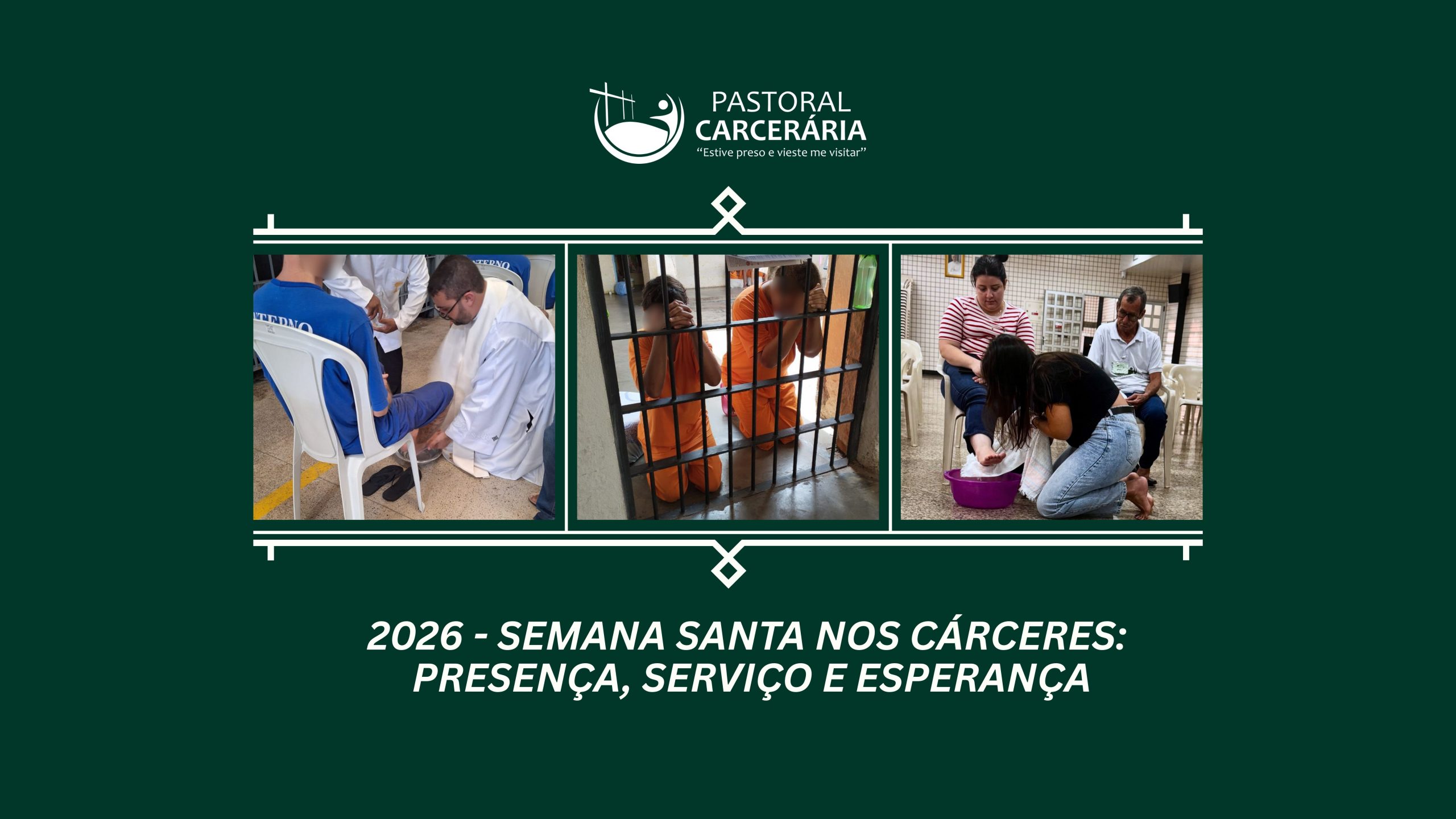 Nesse tempo tão significativo, os agentes da Pastoral Carcerária preparam, com carinho e dedicação, as celebrações junto aos irmãos e irmãs privados de liberdade, procurando reviver, com eles, os passos de Jesus. Entre os sinais mais marcantes desse período está o gesto do lava-pés, que expressa a vivência concreta da humildade, do serviço ao próximo, da purificação e do amor fraterno.