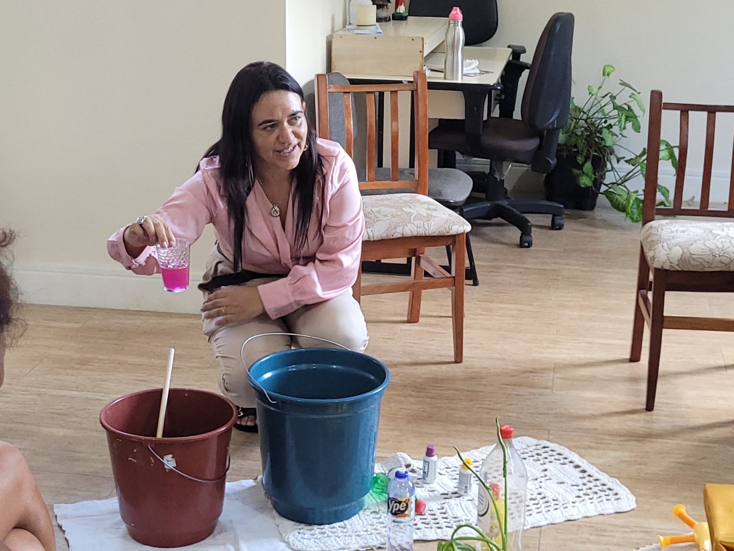 Após o círculo, Erika iniciou uma oficina de como produzir desinfetante para vender, com baixos custos, além de dar dicas de como apresentar o produto e vendê-lo.
